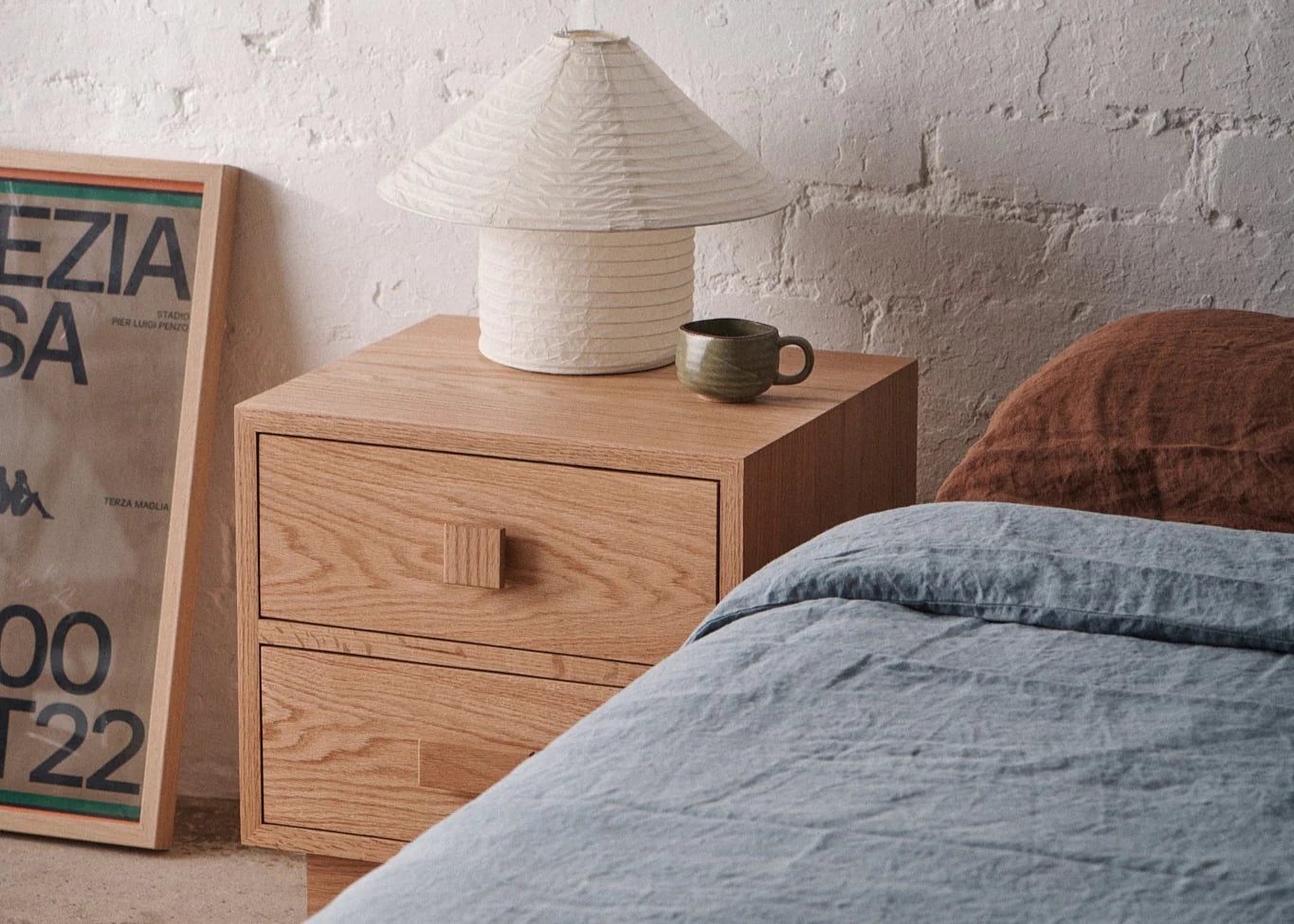 Each Wren bedside table is handmade from natural timber, which means colour and grain may vary, making each table unique
