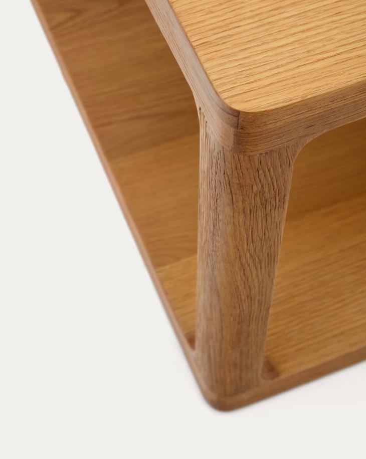 The Mimi coffee table unit is made of solid oak and features an elegant curve in each connecting corner. A minimalist and robust design, the Mimi collection is constructed from oak with a natural finish and brushed effect.