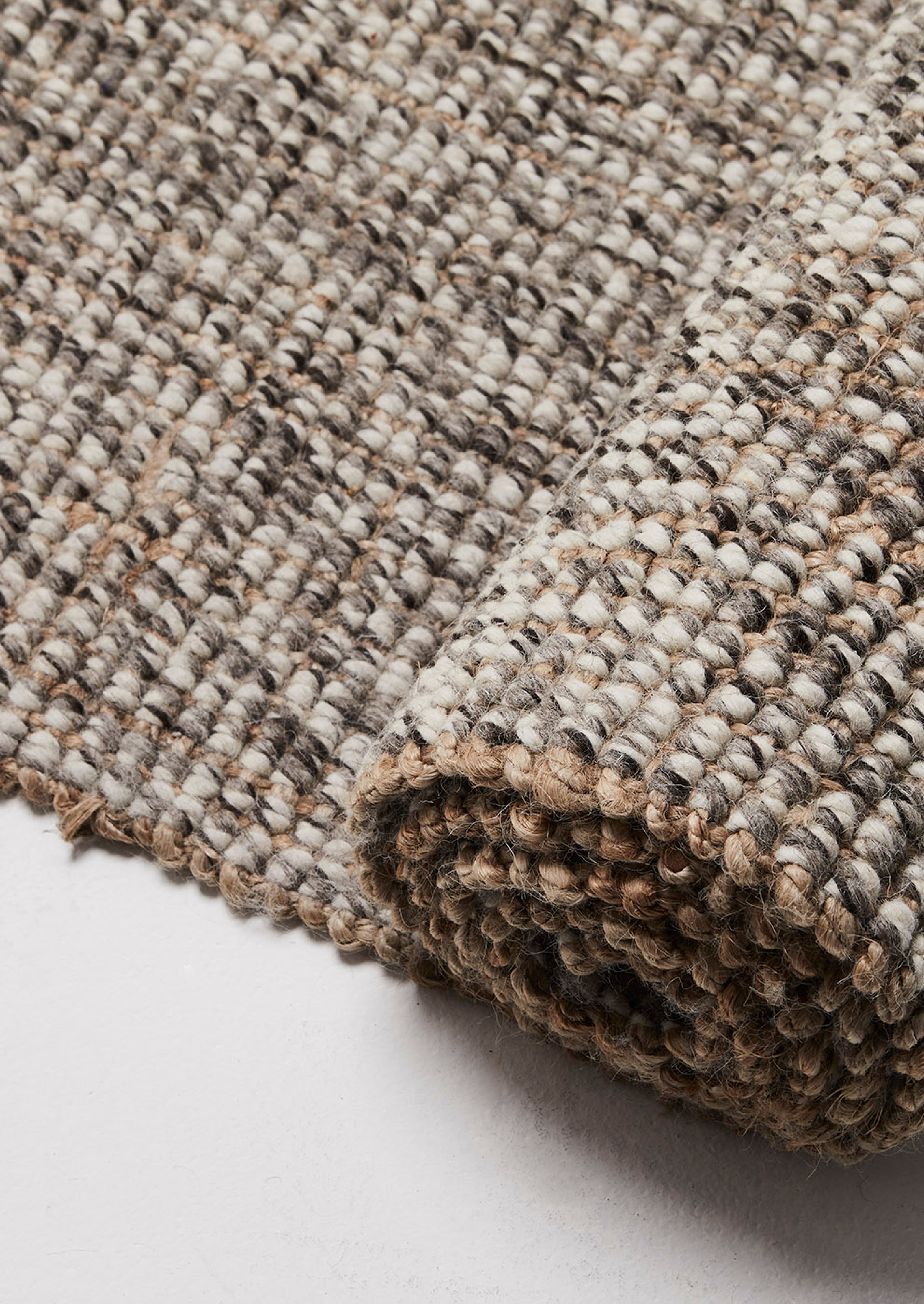 Made from natural undyed New Zealand merino wool and natural jute, this beautiful handwoven rug is incredibly supportive underfoot and provides great insulation.