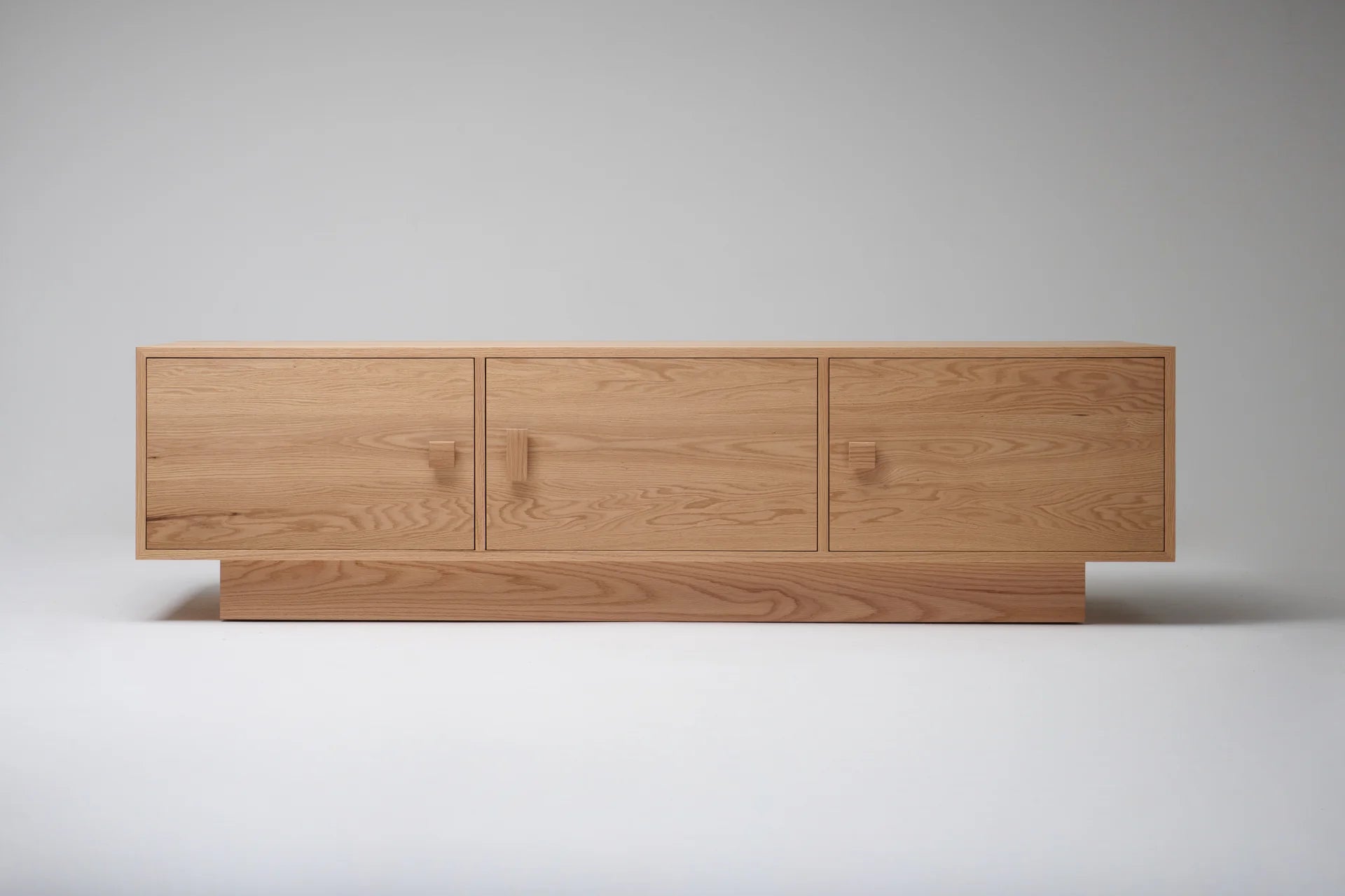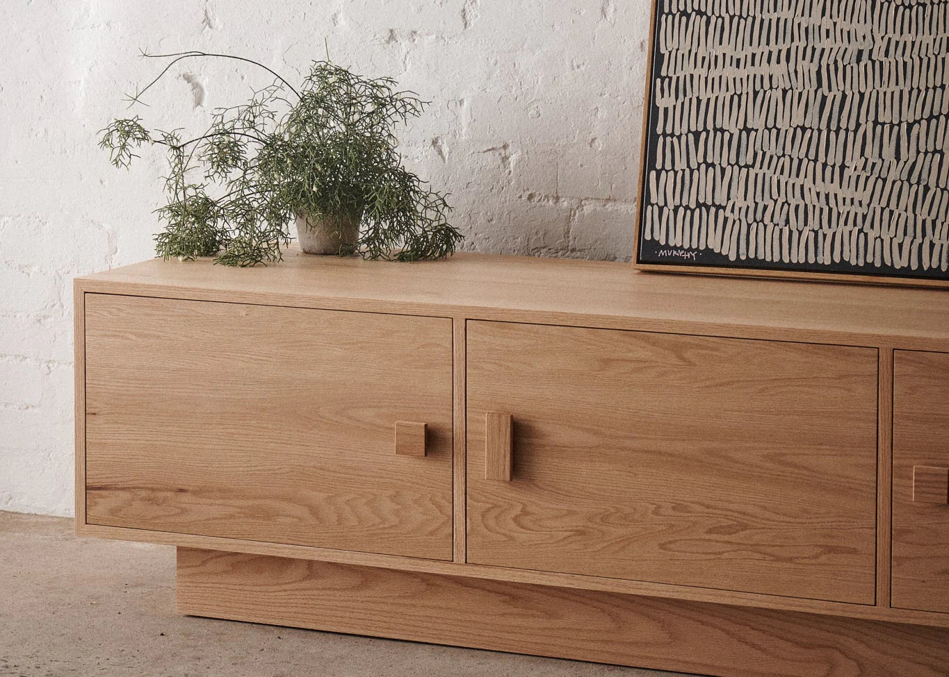 Considered size and proportion make the Wren Sideboard a perfect addition to your living room. Clean and low-profile, the design mindfully weighs form and function, with adjustable internal shelves to store household items. Thoughtful details like contrasting handles and mitred edges express simple refinement.