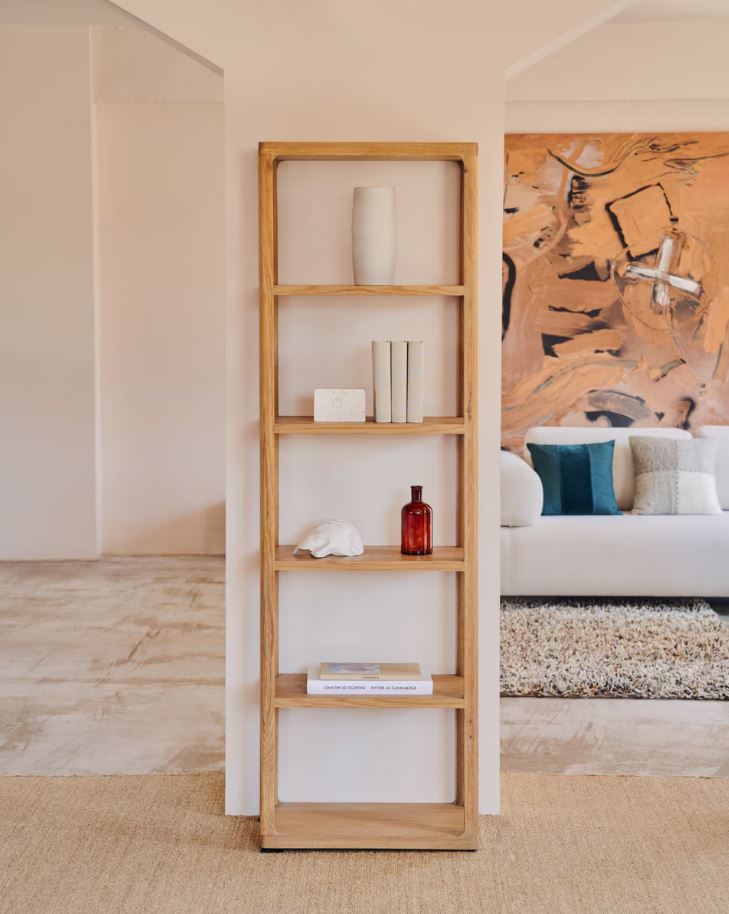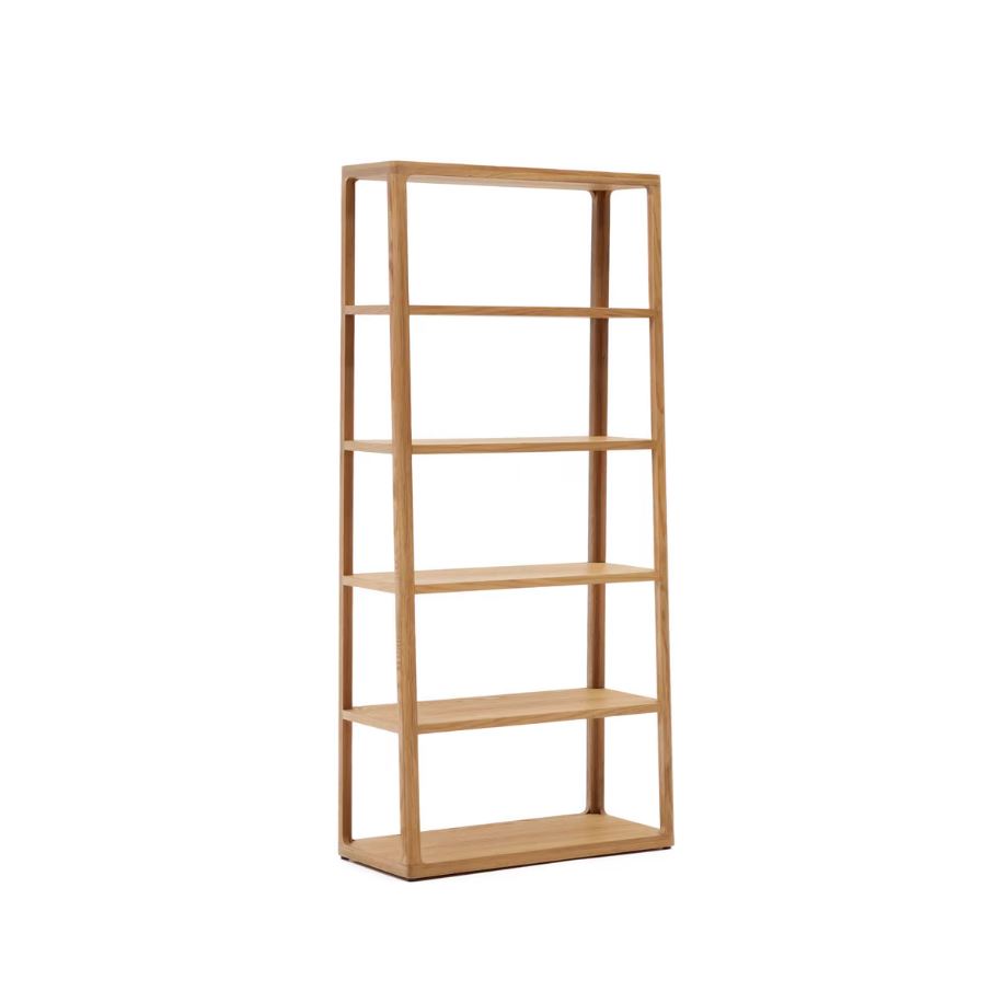 The Mimi shelving unit is made of solid oak and features an elegantly tapered top to bottom. A minimalist and robust design, the Mimi collection is constructed from oak with a natural finish and brushed effect.