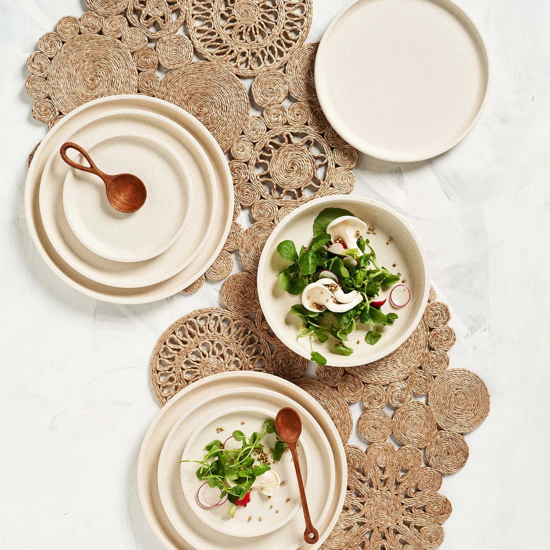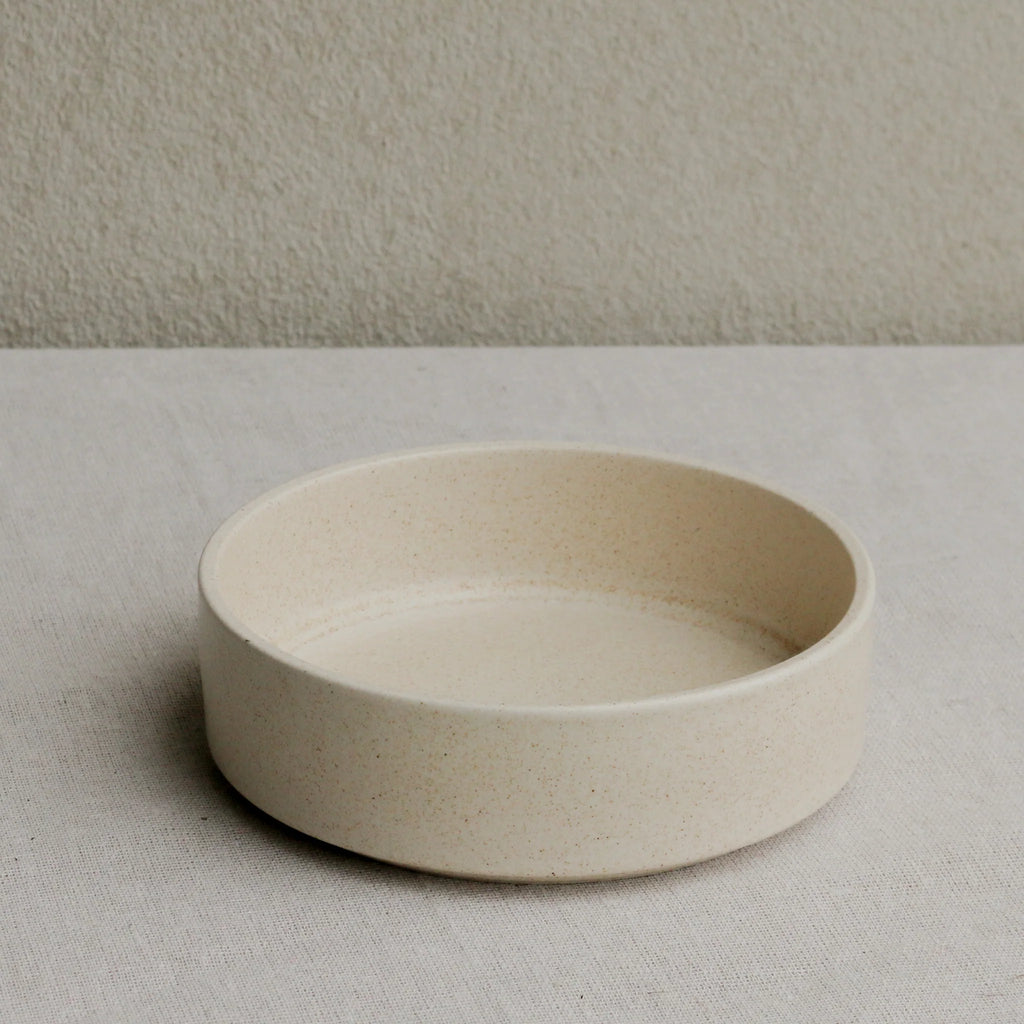 A unique cream clay with an oatmeal fleck and modern profile, make this hospitality grade collection perfect for showing-off your culinary creations. Stacking is a breeze