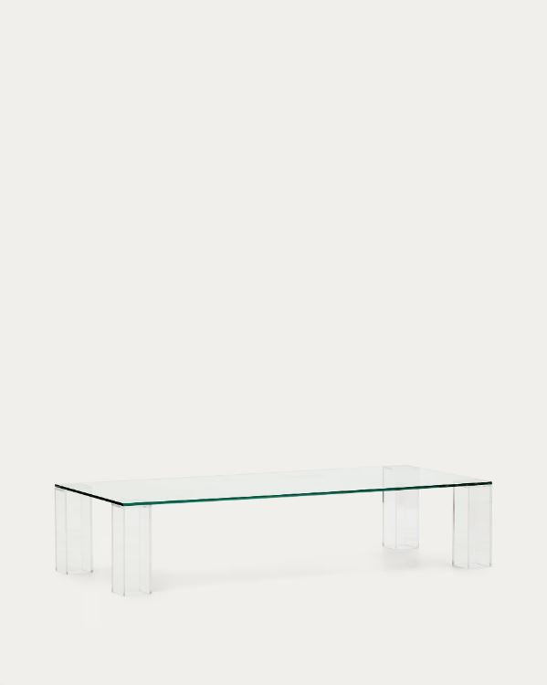 Alexi is a minimalist, tempered glass design that stands out with its clean lines and right angles that combine simplicity and sophistication. Perfect for small spaces, its transparent structure favour light, creating a sense of spaciousness and lightness in the surroundings. The elegance of its geometric shapes adds a contemporary and avant-garde touch, making it a versatile and stylised option for any ambience. Available in square or rectangle.