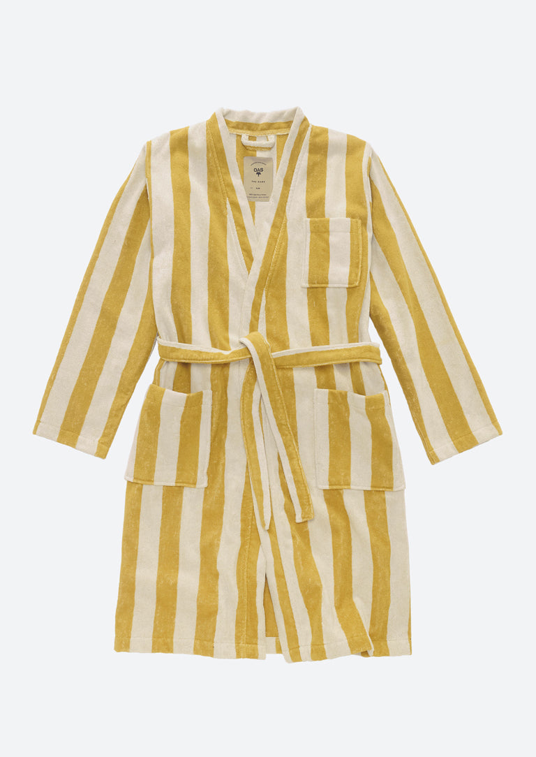 The Mustard robe parades jacquard-woven stripes in sorbet shades of soft and absorbent cotton terry.